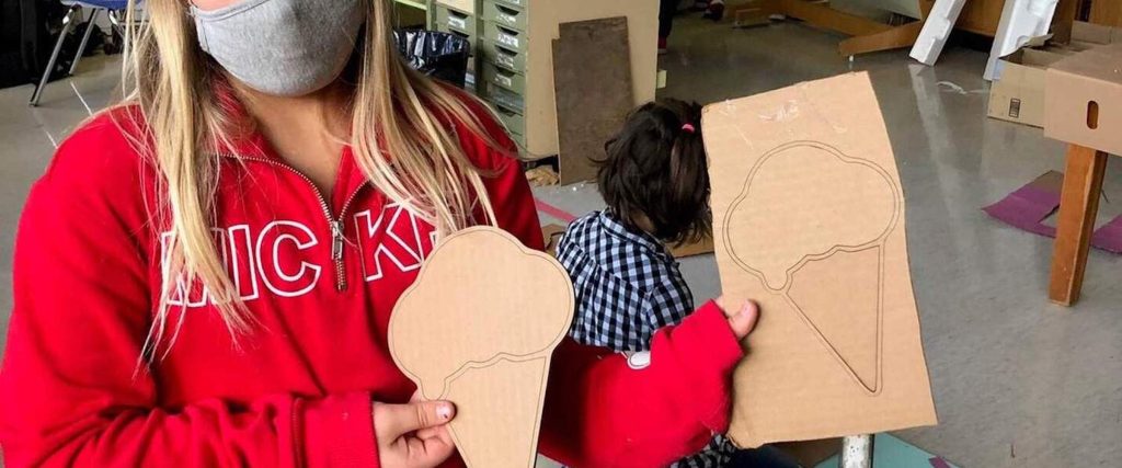 Students at Salmo Elementary school are lining up at lunch recess with cardboard in hand these days. They are patiently waiting for their turn to